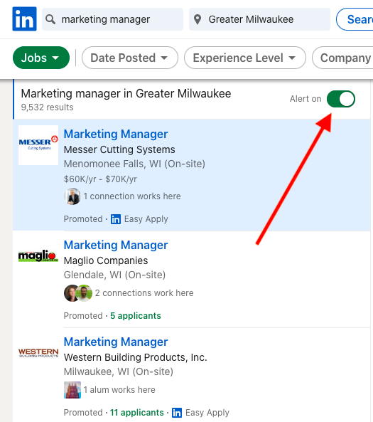 2. Create LinkedIn Job Alerts for the right jobs and the right companies. You can now set specific job alerts for the companies you’re interested in and notify those companies’ recruiters that you’re interested. This capability showed up without much fanfare last year, and it’s a real game-changer.
